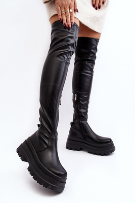 Жіночі чорні чоботи вище коліна на платформі та каблуці Manaliis