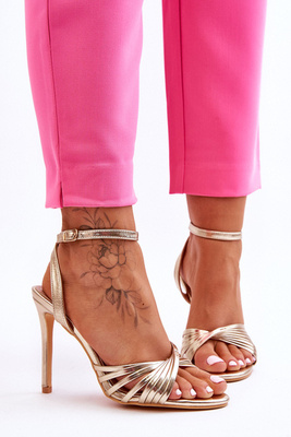 +4Жіночі босоніжки на високих підборах золоті My Darling