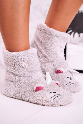 Жіночі домашні пухнасті тапочки з маленькими вушками Бегемот сірий