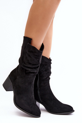 Жіночі чоботи на підборах з пряжкою та підкладкою чорного кольору Aesha