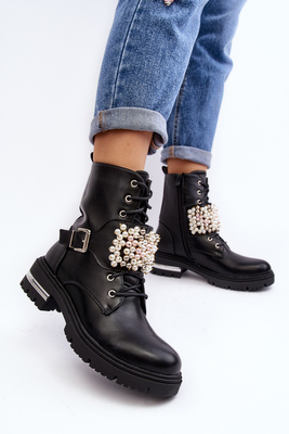 Жіночі робочі черевики на підкладці з декором Black Venizi