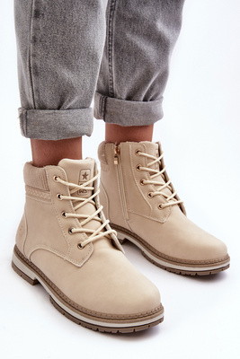 Жіночі утеплені ботильйони на плоскому каблуці бежеві Saranema