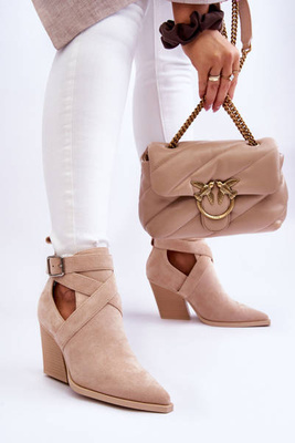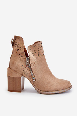 Ажурні замшеві чоботи на підборах бежеві Leanna