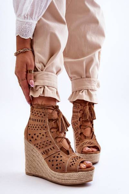 Замшеві ажурні чоботи Lewski Shoes 3264 Темно-бежевий