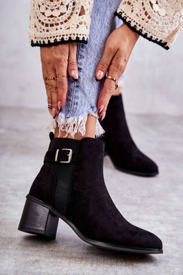 Замшеві теплі черевики з поясом Чорні Aurelio