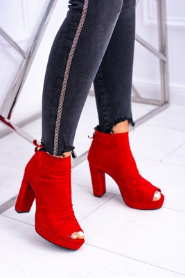 Жіночі чоботи на шпильці з відкритим носком, темира червоного кольору