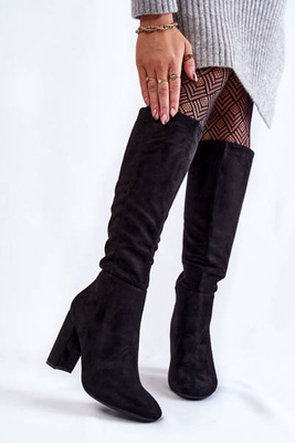 Теплі замшеві чоботи на підборах Чорні Obsessive