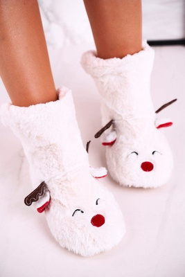 Різдвяні утеплені тапочки з білим оленем Рудольфом