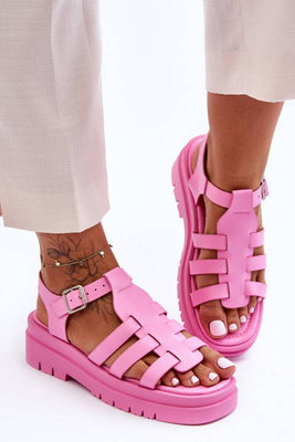 Замшеві босоніжки на плоскій підошві з декором Nicole 2744/067 Фуксія