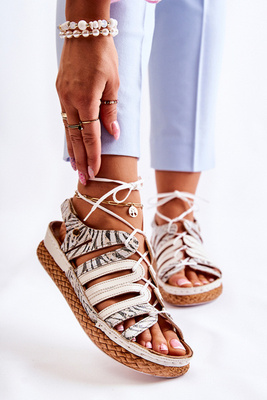 Жіночі шкіряні босоніжки з декором бежеві Halis