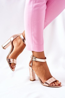 Босоніжки на високих підборах із шнурівкою та квадратним носком. Золотий подіум