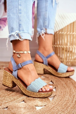 +6Жіночі босоніжки на анкорі з льону синього кольору