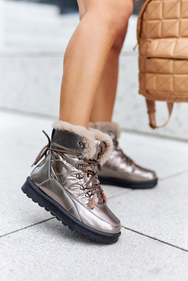 Жіночі зимові черевики з тасьмою, утеплені на хутрі, сірі Kaylee