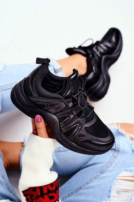 Спортивне жіноче взуття на товстій підошві чорного кольору