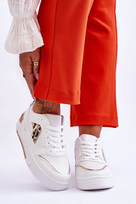 Жіноче шкіряне спортивне взуття з леопардовим принтом білі Nancey
