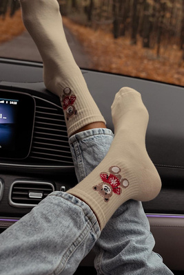 Жіночі Різдвяні Шкарпетки Ведмідь З Шапкою Святого Миколая Сірі