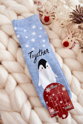 Жіночі шкарпетки новорічні візерунки з синім пінгвіном