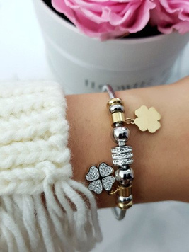 Жіночий браслет на дроті з нержавіючої сталі з золотими підвісками