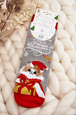 Жіночі новорічні шкарпетки зі сніговиком сірі