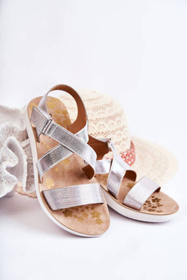 Дитячі босоніжки з ланцюжком сріблясті Баффі