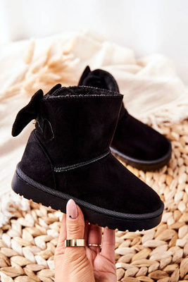 Дитячі снігові черевики з хутром і бантом чорні Vella