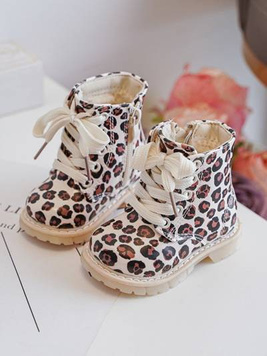 Снігові черевики Дитячі ботильйони з леопардовим принтом на платформі, утеплені хутром, коричневі Vilabria