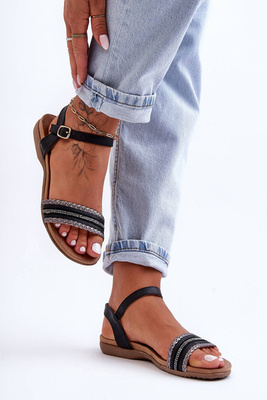 Жіночі класичні сандалі на плоскій підошві чорні SBarski 6708