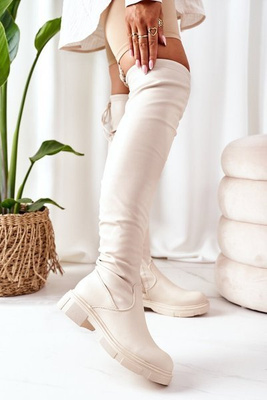 Утеплені чоботи на блочному каблуці Бежеві Саллі