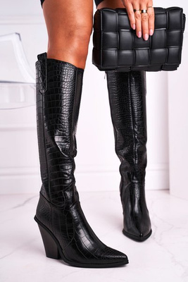 Чоботи жіночі на підборах Sergio Leone чорні BT613