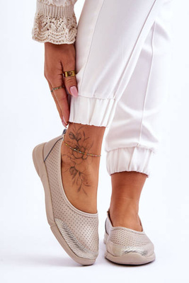 Шкіряні жіночі ажурні балетки бежеві Люсі