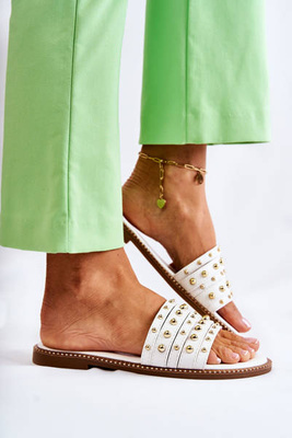 +4Шкіряні жіночі тапочки Nicole 2659/004 біло-золоті