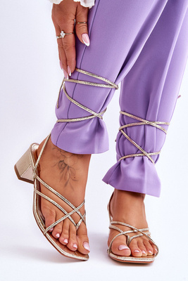 Жіночі зав'язані босоніжки на високому каблуці фіолетового кольору Meya