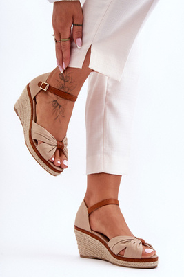 Жіночі босоніжки на кольоровій танкетці бежеві Malibu