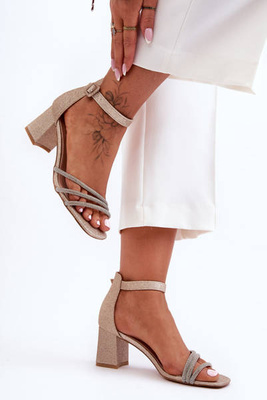 Зручні шкіряні босоніжки на каблуці золоті Bellamy