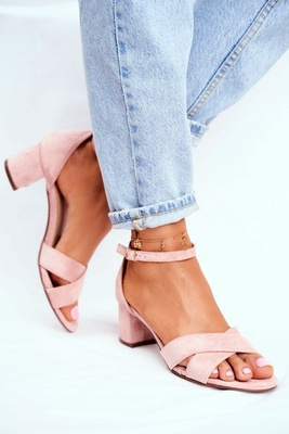 Жіночі босоніжки на шпильці замшеві рожеві Anastasie