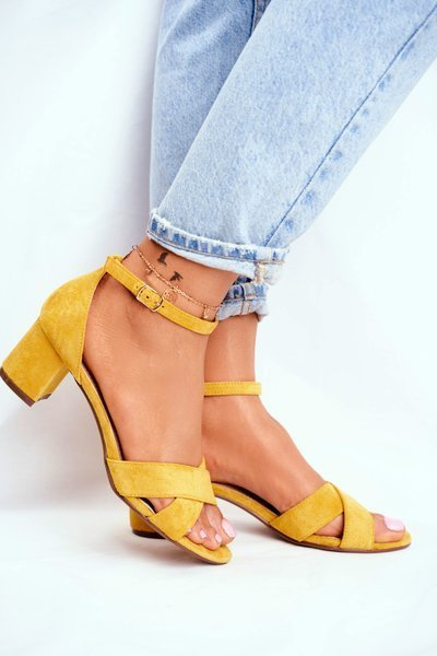 Жіночі босоніжки на шпильці замшеві жовті Anastasie