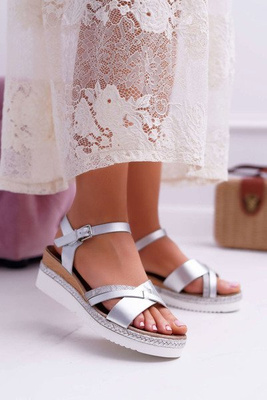 Жіночі срібні босоніжки з камінням Tenese