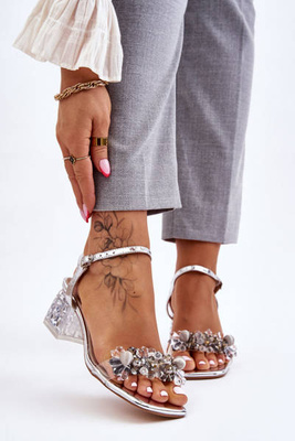 Босоніжки на низькому каблуці зі стразами Silver Monra