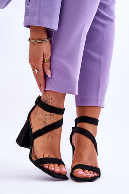 Зручні замшеві босоніжки на масивному каблуці Чорні Elishia