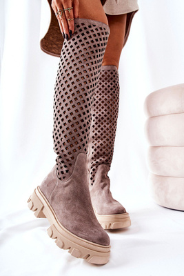 Замшеві ажурні чоботи Світло-коричневі Kallede