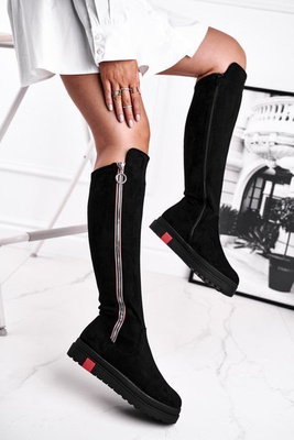Чорні жіночі замшеві чоботи на платформі Sergio Leone KZ296