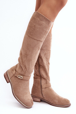 Жіночі замшеві чоботи вище коліна бежеві Lewski 3367
