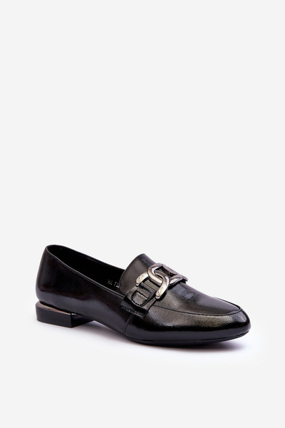 Лаковані Жіночі Мокасини З Декоративною Пряжкою Чорні Mollan