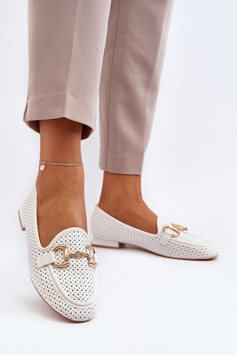 Жіночі мокасини на плоскій підошві з прикрасами білого кольору Iluvana