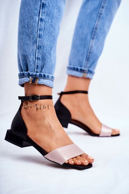 Шкіряні блискучі сандалі Maciejka 04618-21 чорно-рожеві
