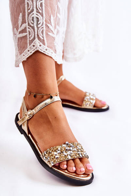 Жіночі босоніжки на плоскій підошві з шпильками Gold Francesca