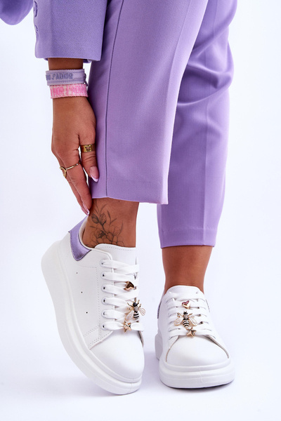 +3Жіноче спортивне взуття на масивній платформі біло-фіолетового кольору Chante