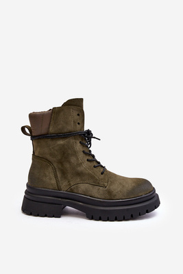 Замшеві черевики Trapper з флісовою підкладкою та плоским каблуком Темно-зелені Zikey