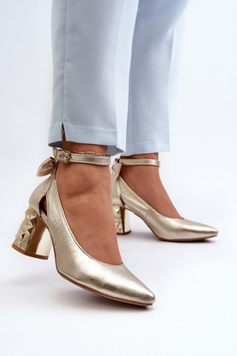 +3Шкіряні туфлі з бантом Maciejka 05059-25 золото