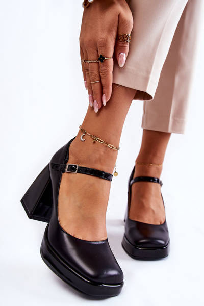 Шкіряні туфлі на високій колоні. Чорна саліра